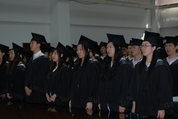 最后,2010届毕业生毕业典礼在庄严的校歌声中结束。