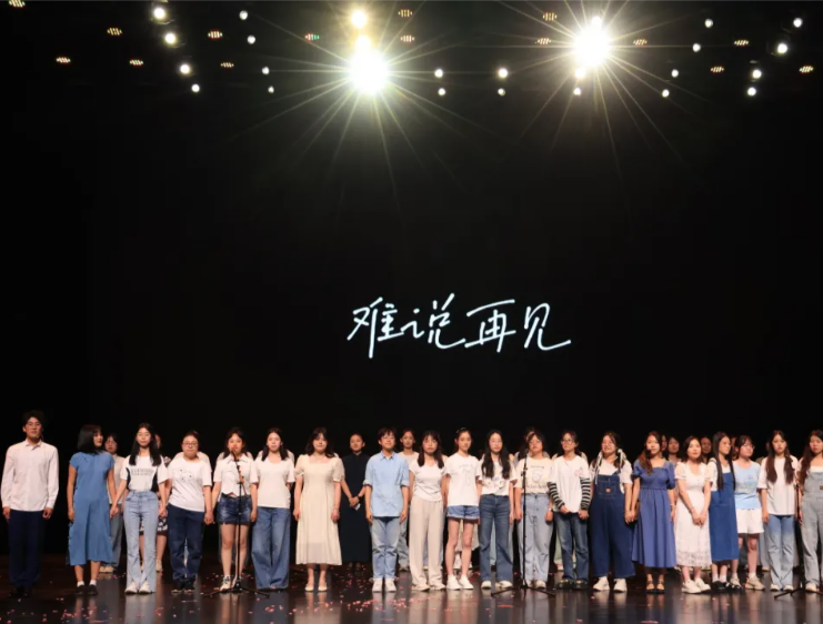 晚会的第三篇章名为“扬帆远航”。少年乘风起,未来皆可期,在这一篇章,相声表演风趣幽默又发人深省;激情热舞洋溢着青春向上的活力;本科2020级中文班的合唱真情流露,激荡起现场师生心中的层层涟漪;器乐合奏《Another day of sun》如乐名一般温暖着台下的每一位听众。来自毕业年级的歌曲、舞蹈将整场晚会的情绪推向顶点,屏幕上映出同学们熟悉的面孔,来自学院各系部的教师代表、班主任代表为同学们送上了毕业赠言。