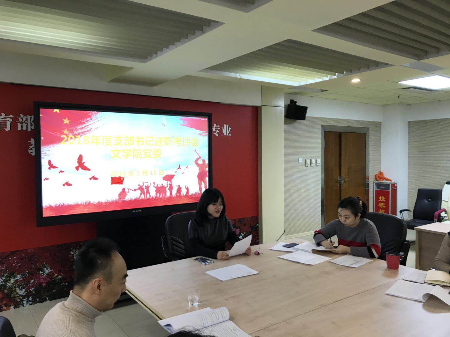 中国史、世界史系教工党支部徐萍、行政教工党支部张谦谦、国际语言学院教工党支部屈菲共三位教工党支部书记依次进行述职。教工支部书记就2018年党建工作完成情况、党支部组织生活、2019年党支部工作计划以及存在的不足等工作进行了详细介绍。